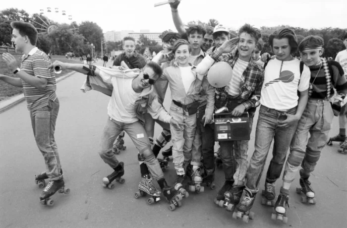 18. Молодежь на роликовых коньках в парке Горького, Москва, 1990 год