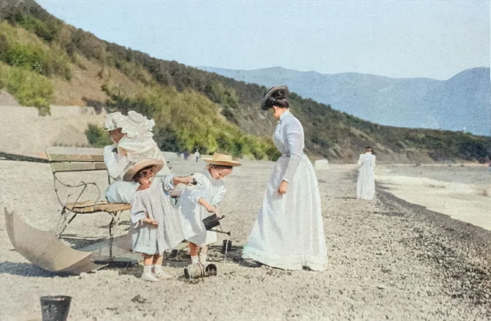 Августейшие Дети Их Императорских Величеств на берегу моря в Ливадии, 1900 год.