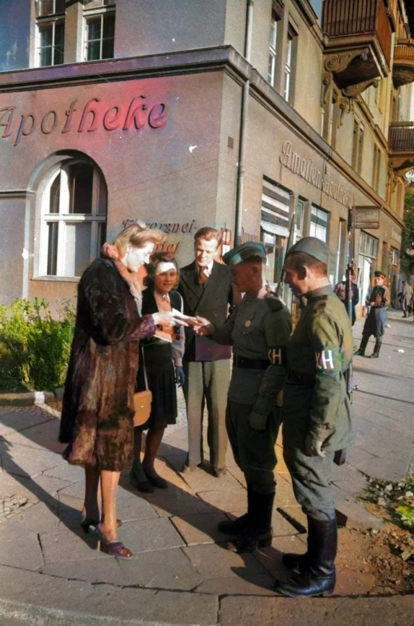 В 1945 году советские военные патрули проверяют документы у жителей Берлина. В начале 1941 года немцы даже не могли представить, что спустя четыре года им придётся останавливаться по требованию советских солдат и предъявлять удостоверения личности. Теперь по улицам Берлина ходят советские военные, устанавливая новый порядок.