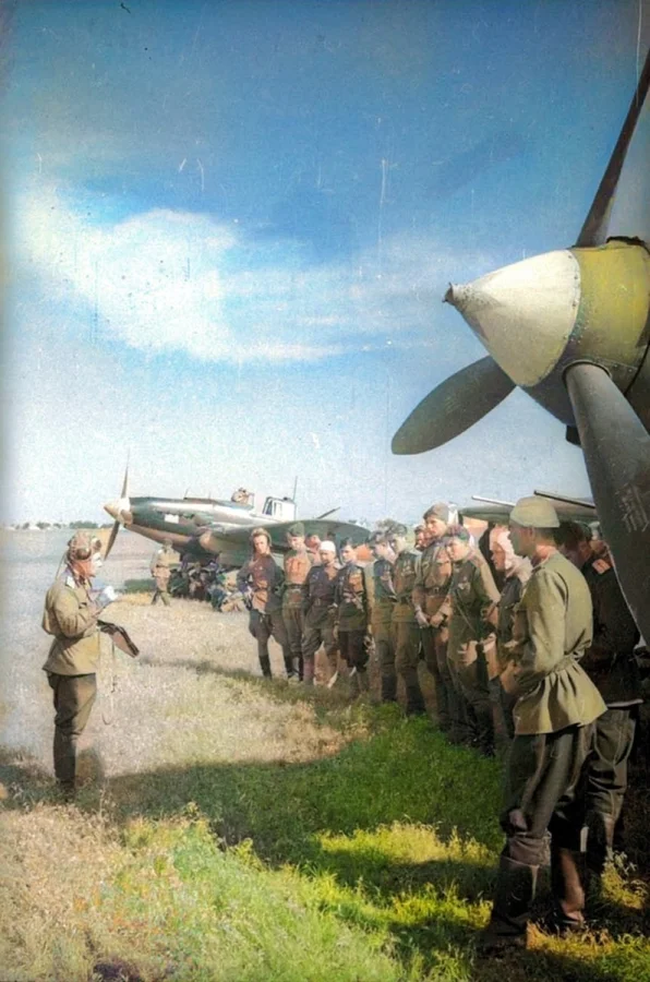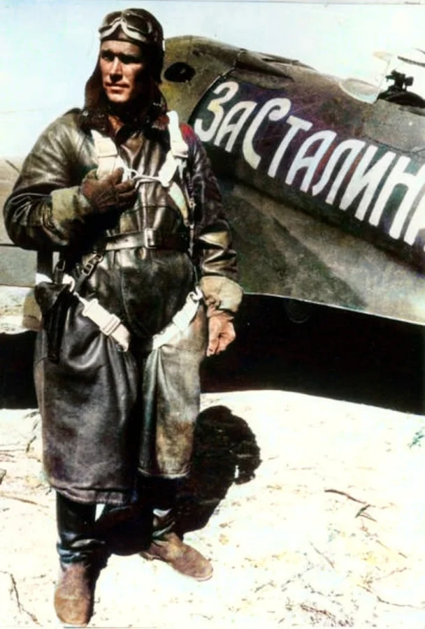 На снимке изображён лётчик Борис Сафонов, дважды Герой Советского Союза, Мурманск, 1941 год. Ему было всего 26 лет. За свою короткую, но яркую жизнь он участвовал в сотнях боёв — сначала в Финляндии, а затем на фронтах Великой Отечественной войны. Он совершил 234 боевых вылета и одержал 26 воздушных побед. Борис одним из первых освоил иностранные самолёты "Хоукер Харрикейн", поставляемые по ленд-лизу. В конце мая 1942 года его самолёт потерпел крушение в Баренцевом море. Спустя месяц его посмертно наградили второй Звездой Героя. На тот момент он был самым результативным лётчиком на фронте.