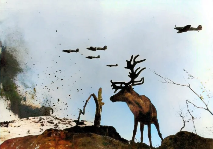 1942 год. Борт-стрелок торпедоносца Ил-4 готовится к боевому вылету. Фотография сделана на Кольском полуострове. Особого внимания заслуживает самолёт — это дальний бомбардировщик, который спустя три года станет одним из первых, кто нанесёт удары по нацистским позициям в Берлине.