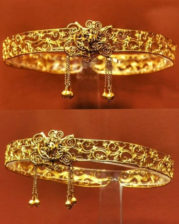 15. Древнегреческая золотая тиара (диадема), 325-330 гг. до н. э., Национальный археологический музей, Афины