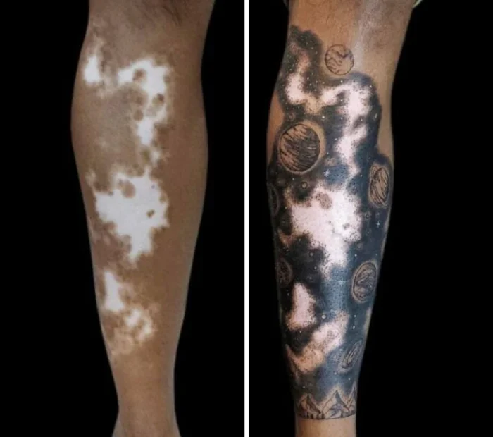 Пример того, как человек не только принял себя, но и смог найти интересное решение своей особенности. Все понимают, что такую тату могут сделать лишь немногие.