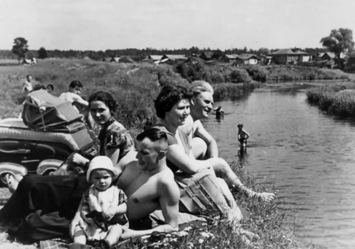 Юрий Гагарин с семьей на отдыхе, река Клязьма, Пушкино, июнь 1960 года