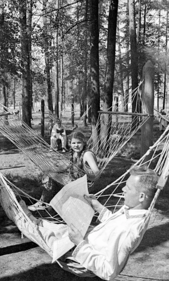 Отдых в гамаках в Парке Горького, Москва, фото Л. Доренского, 1938 год