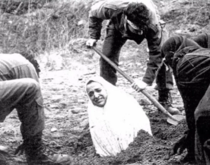Слабонервным лучше не читать, но казнь проходила по следующим этапам: засыпали землей до полного обездвижевания, потом забивали камнями до смерти, а затем уже закапывали полностью и топтали могилу ногами.