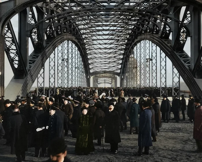 Мост Императора Петра Великого в день его открытия. Санкт-Петербург, 1911 год.