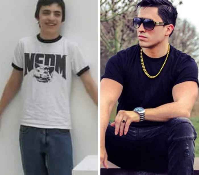 «Таким неуверенным в себе пухликом я был в 12 лет. Прошел длинный путь работы над собой, результат вы видите сами. На фото справа мне 21 год»