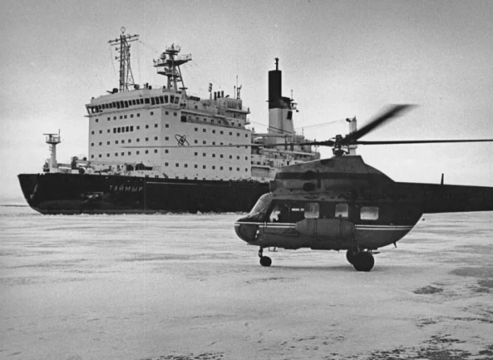 8. Ми-2 на фоне атомного ледокола "Таймыр".