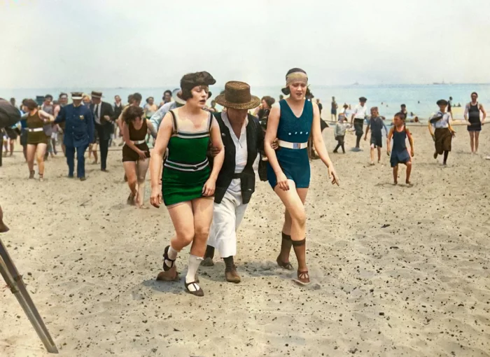 В начале 1920-х годов женщины начали внедрять более практичные и открытые купальники, что вызвало противодействие консервативного общества, считавшего такие купальники морально неприемлемыми. Пляжные полицейские, чаще всего женщины, следили за соблюдением правил, например, чтобы купальники не поднимались выше колена или не были слишком облегающими.