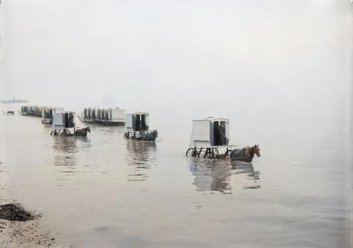 Морские купальни были передвижными или стационарными сооружениями, предназначенными для обеспечения приватности во время купания. Передвижные купальни доставлялись в море на небольшом расстоянии от берега, где человек мог переодеться и искупаться, оставаясь скрытым от посторонних глаз. После купания купальню возвращали на берег.
