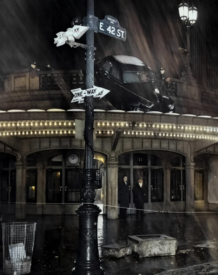 Автомобиль пробил ограждение Парк-авеню. Нью-Йорк, 1944 год.