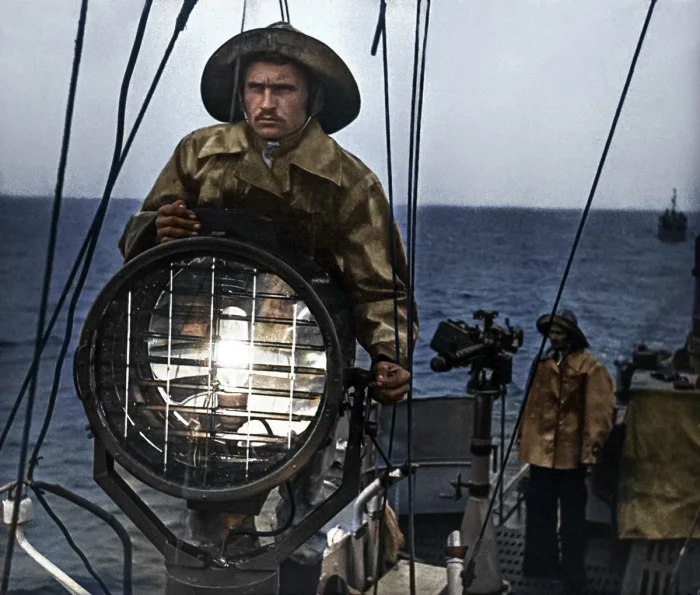 Рыбаки на вахте. Каспий, 1946 год.