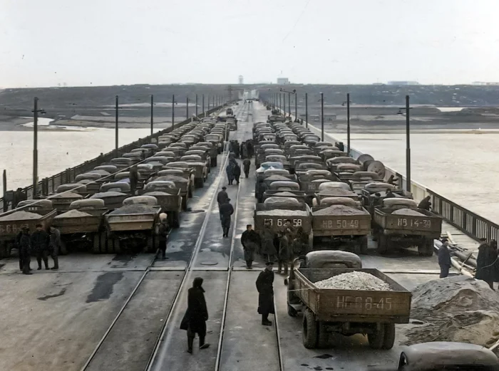 Испытания Октябрьского моста перед открытием. Новосибирск, 1955 год.