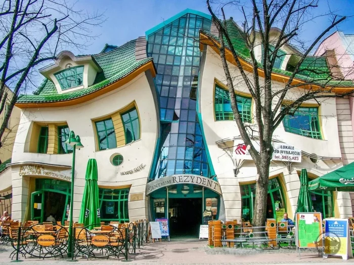 «Кривой дом» (Krzywy Domek) стал одной из самых фотогеничных достопримечательностей польского курорта Сопот. Построенный в 2004 году по проекту архитекторов Шотинских, он словно вышел из волшебной иллюстрации или сюрреалистического сна.