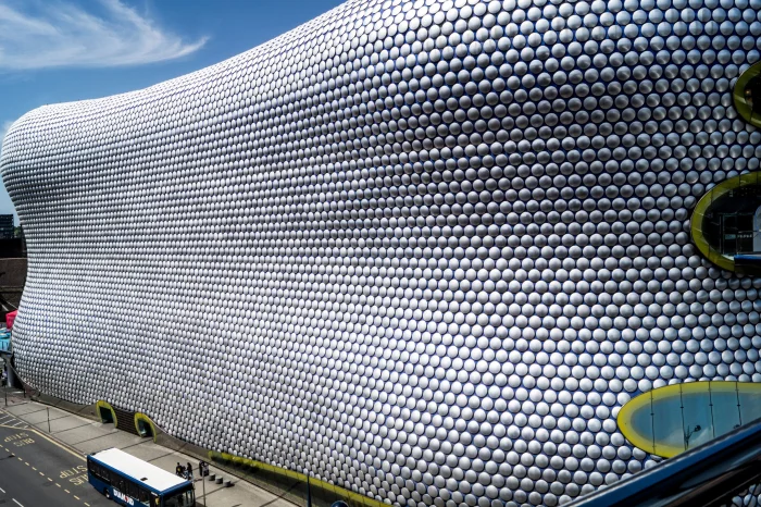В 2003 году Бирмингем получил одно из самых необычных зданий Великобритании. Это торговый центр Селфриджес Билдинг (Selfridges), чей фасад выглядит так, будто его обернули в гигантскую пузырчатую плёнку. Этот авангардный дизайн стал архитектурной иконой города.