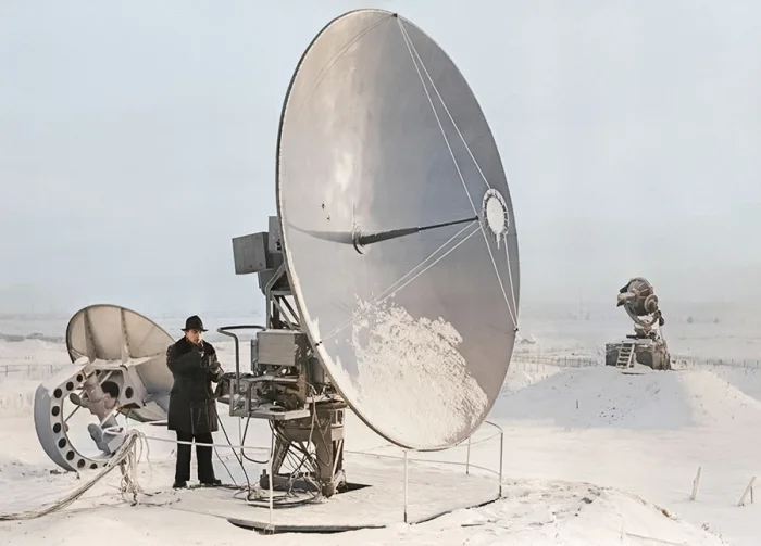 Радиотелескоп Пулковской астрономической обсерватории. Ленинград, 1958 год.