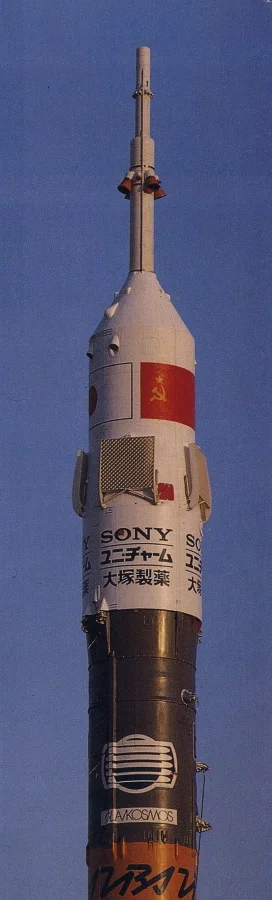 6. "Союз ТМ-11" с японским туристом на борту и рекламой компаний: Sony, Unicharm и Otsuka Pharmaceutical. Декабрь, 1990 год.