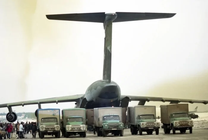 7. Самолет ВВС США с 30-ю тоннами продовольствия в аэропорту Шереметьево-1. Операция "Provide Hope". Фотохроника ТАСС, 1992 год.