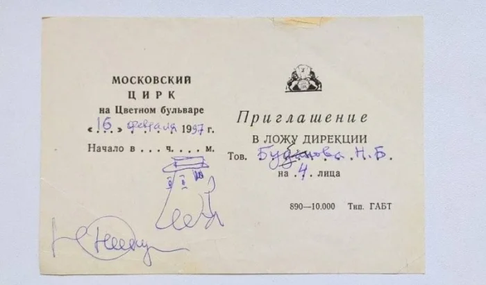 18. Приглашение в цирк, которое было выписано лично Юрием Никулиным. 1997 - последний год жизни великого артиста.