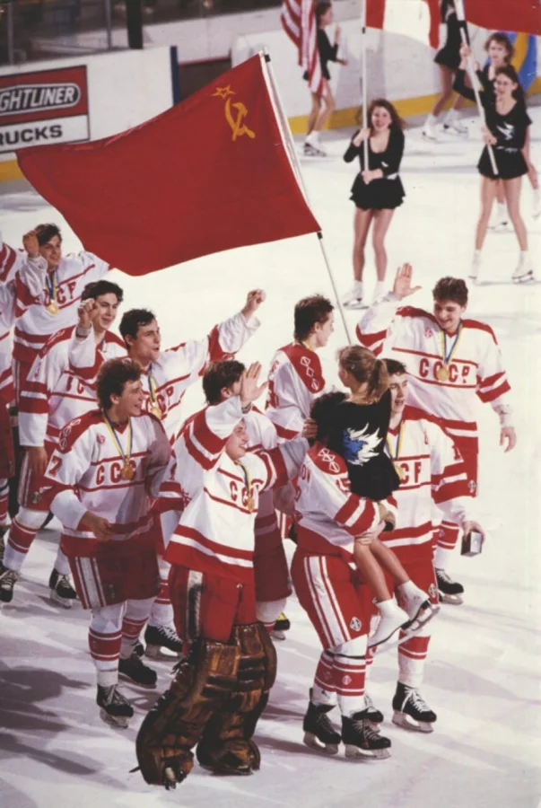 20. Чемпионы! Круг почёта. Сборная СССР - победитель чемпионата мира по хоккею среди юниоров, 1989 год.