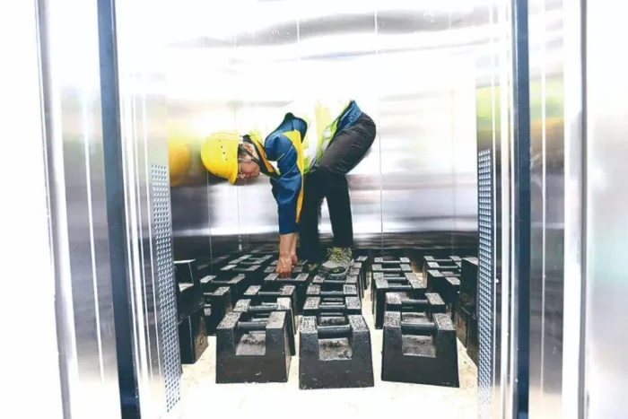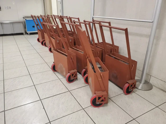 Так это грузы для проверки лифтов. Тележка весит 100 фунтов (45 кг), и там еще 8 грузов по 50 фунтов, всего выходит 500 фунтов (227 кг). Ставят сколько хотят в лифт и проверяют, тянет-не тянет.