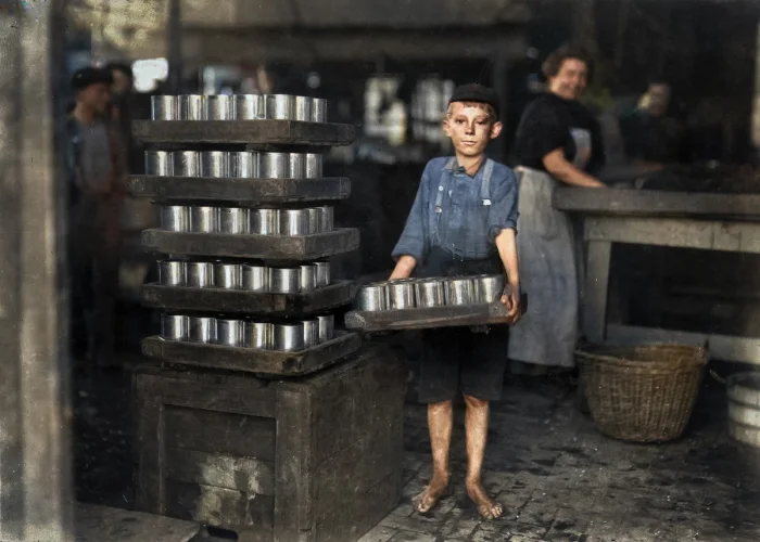 До введения закона о запрете детского труда в Соединенных Штатах в 1938 году в США детский труд был повсеместным явлением: дети трудились в ужасающих условиях потогонных мастерских, на фабриках и в сельском хозяйстве. Экономический кризис Великой депрессии лишь усугубил ситуацию — для многих семей заработок детей стал единственным шансом выжить. Лишь после принятия закона, запретившего эксплуатацию несовершеннолетних, эта практика начала исчезать.