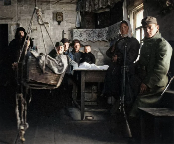 Немецкие солдаты в одном из домов местных жителей. Смоленская область, Рославль, 1941 год.