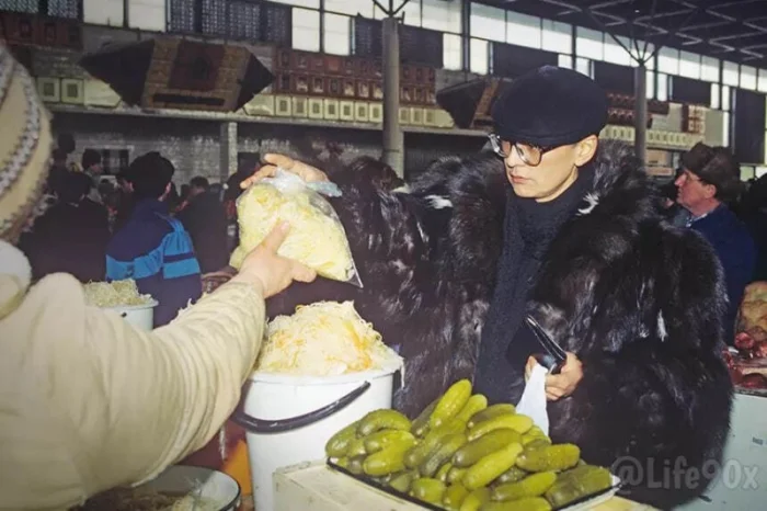 16. Ирина Хакамада приобретает на рынке квашеную капусту, Москва 1994 год