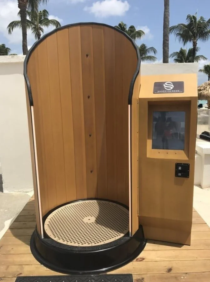 Автомат для нанесения солнцезащитного крема на пляже в Арубе