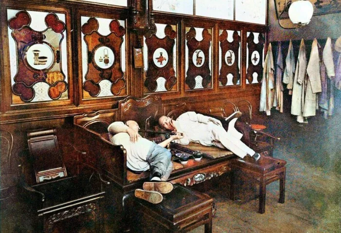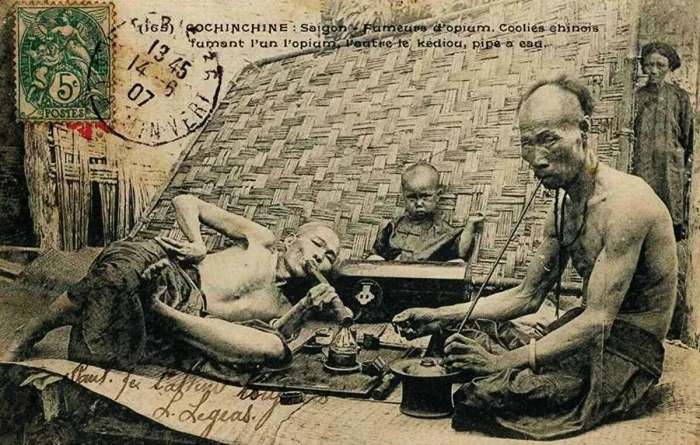 Британцы, с помощью своей Ост-Индской компании, осуществили аферу. В Китае производные мака использовались в медицинских целях, и Ост-Индская компания начала ввозить опиум в Китай контрабандой, минуя китайские власти. Если в 1770-х годах Китай покупал 1,5 тонны опиума в год, то к 1830 году, с учетом контрабанды, было завезено уже 2 тысячи тонн, что сильно повлияло на население Китая. К середине 19 века употребление опиума стало повсеместным в Китае. Опиум выращивался в соседней Индии. Британцы также организовывали в Китае специальные опиумные комнаты, что было не только прибыльным бизнесом, но и способствовало разложению населения.
