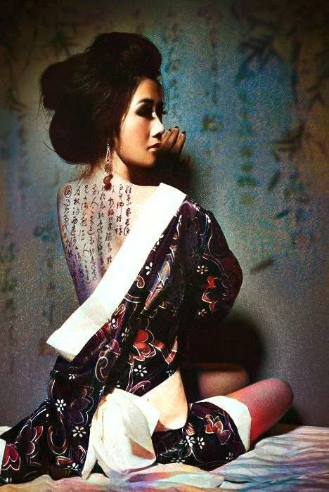 Позже японская мафия (якудза) сделала татуировки своей визитной карточкой. Пик этого движения пришелся на 20 век. В 1960-х годах к этому движению присоединились и девушки для утех. На фото показана одна из девушек, демонстрирующая татуировку.