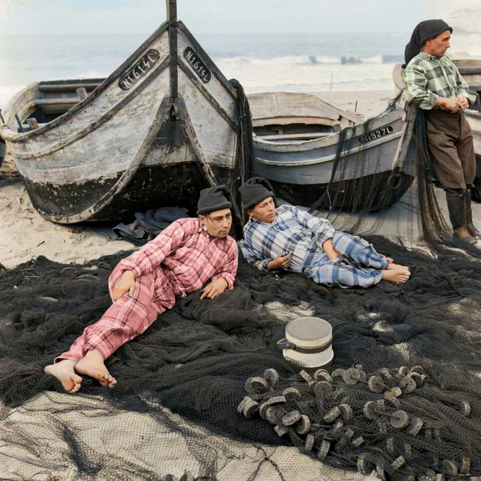Если бы в середине XX века проводили конкурс на самый колоритный рабочий костюм, португальские рыбаки бы точно завоевали главный приз. Их знаменитые цветные комбинезоны с продольными полосками стали настоящей визитной карточкой местных моряков — и выглядели они одновременно практично, ярко и даже немного забавно.