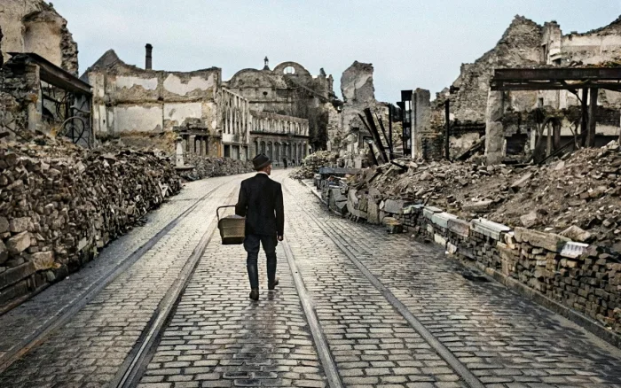 Это — послевоенный кадр, но война на нём всё ещё слышна, и её эхо не смолкло десятилетиями.