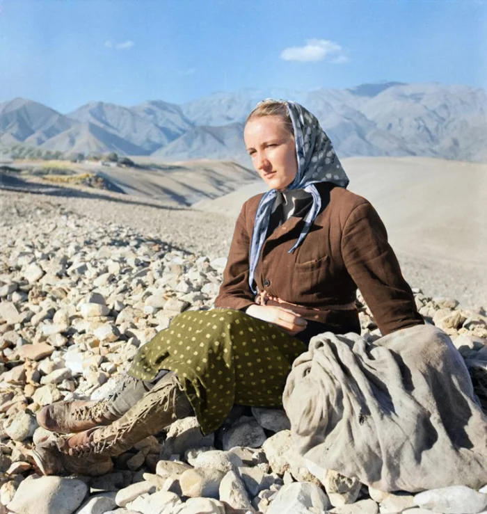 Портрет взрослой дочери семьи Ковальских, беженцев из Польши, отдыхающей во время пешего перехода из Советского Союза через горы в Иран в 1942 году.