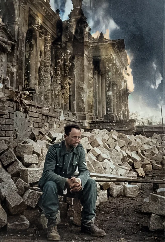 Пленный немецкий солдат у Рейхстага в мае 1945 года.