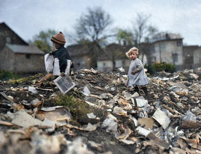 Эти дети не на прогулке и не на игре. Они на свалке, где искали всё, что можно было использовать или продать. Так начиналась их "работа" с утра до вечера — не ради развлечения, а ради еды на столе.