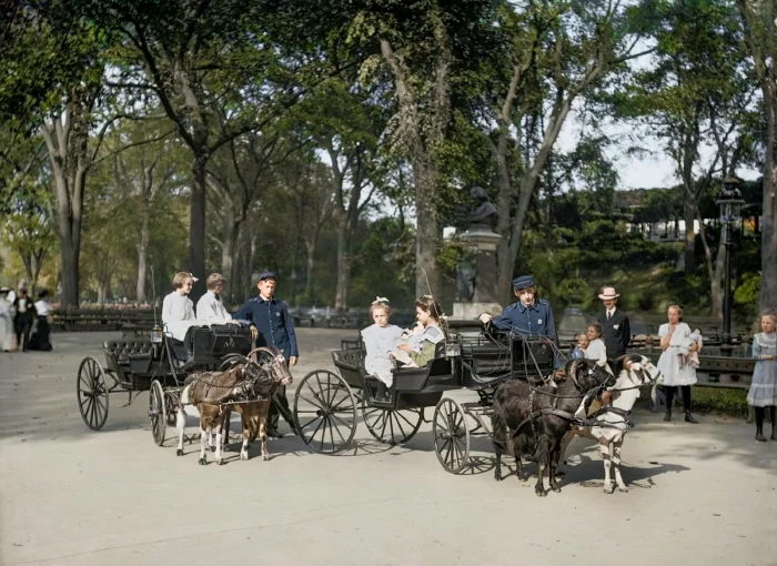 Козы в упряжке в Национальном парке, Нью-Йорк, 1904 год.