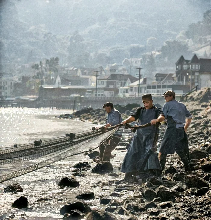Рыбаки вытаскивают сети, набережная Саусалито. Сан-Франциско, 1950-е годы.