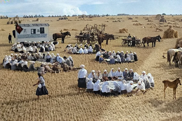 Обед на полевом стане. Украинская ССР, 1933 год.