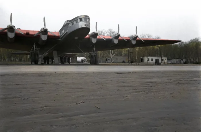 С размахом крыльев почти 63 метра и восемью двигателями, этот гигант был самым большим пассажирским самолетом своего времени с сухопутным шасси.