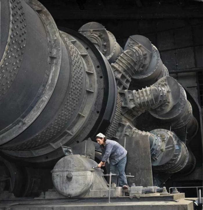 Женщина работает у печи на цементном заводе «Вулкан». Димитровград, Болгария, 1964 год.