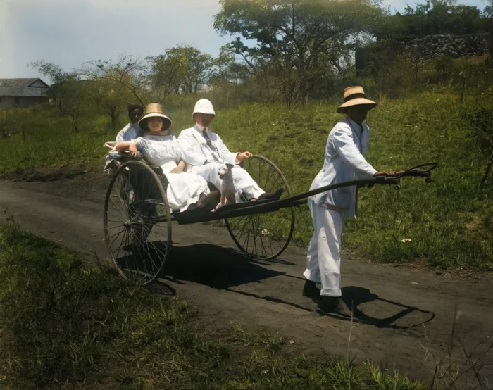 Рикша перевозит семью белых колонизаторов, 1911 год.