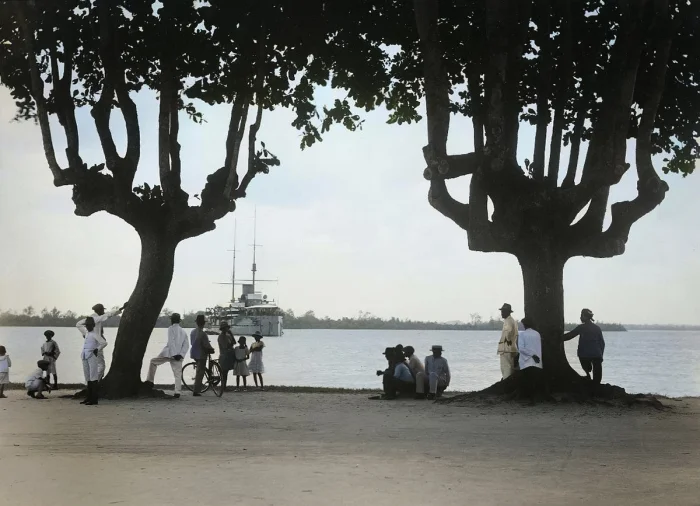 Прибытие парохода «Хертог Хендрик» на реку Суринам близ Парамарибо. Суринам, 1928 год.