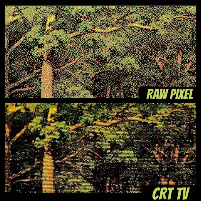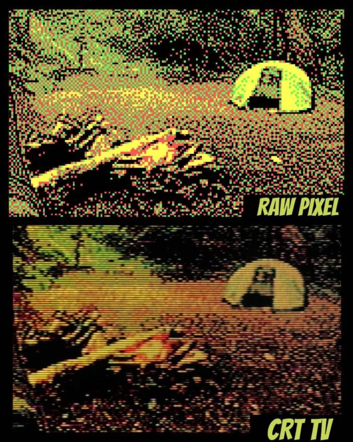 На кинескопах отдельные пиксели несколько смазывались и слегка сливались, в результате чего создавалась иллюзия более плавных линий и мягких цветовых переходов, а также появлялись детали, которые в реальности отсутствовали.