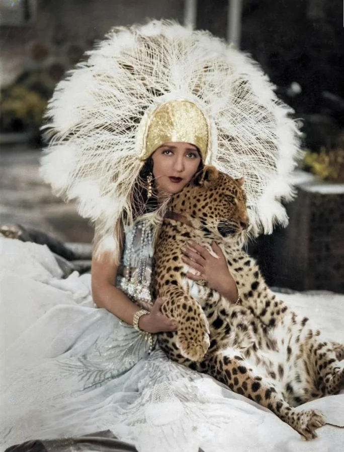 Актриса Биби Дэниэлс с леопардом, 1927 год.