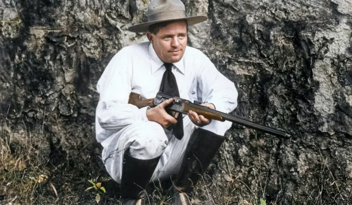Писатель Джек Лондон на охоте с винтовкой Remington Model 8, 1916 год.