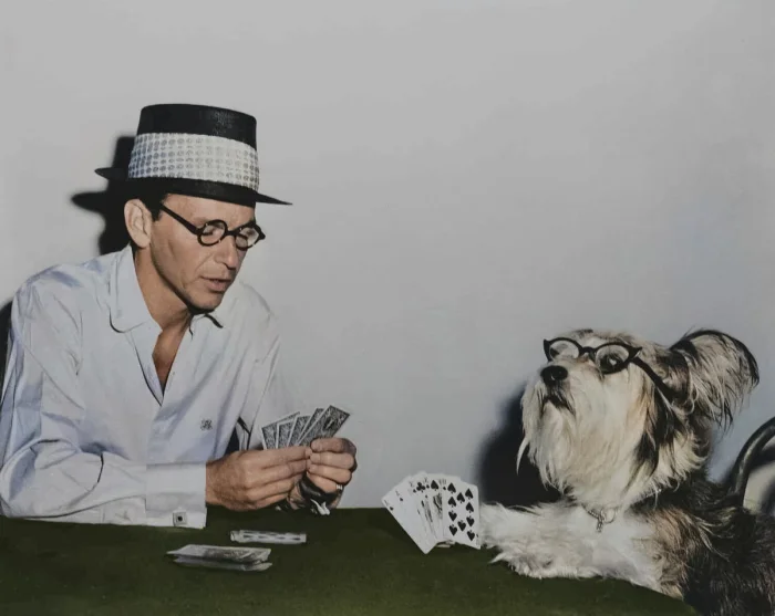Фрэнк Синатра играет в покер с собакой, 1955 год.