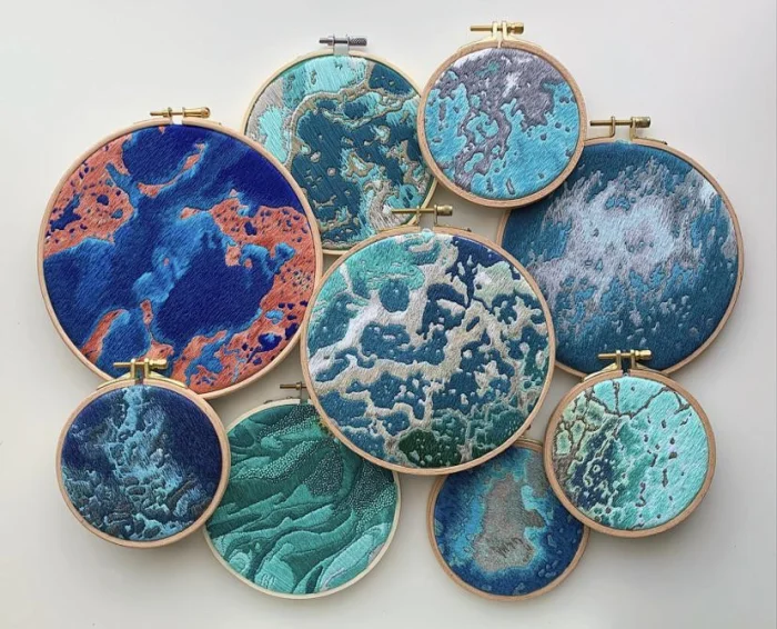 19. Коллекция вышивок, повторяющих спутниковые снимки морей