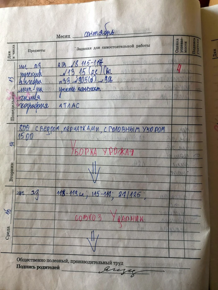 Честно говоря, нам эти поездки нравились. Это была почти экскурсия: уроки отменяли, по дороге домой могли заехать на речку. Поэтому, когда сегодня читаешь, как кто-то возмущается, что ребёнка заставили вытереть доску или подмести пол, — невольно улыбаешься.